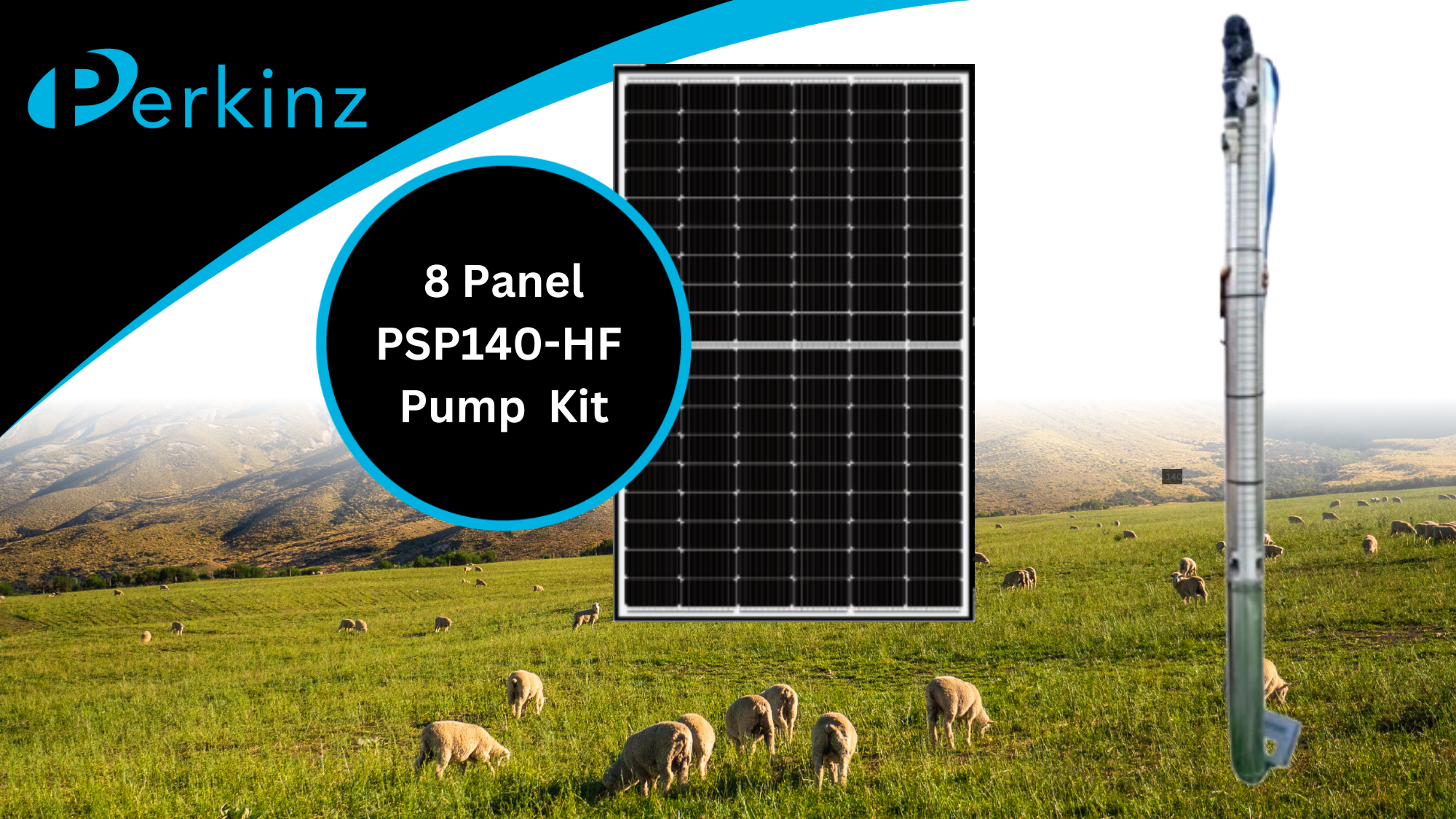 EnquirePerkinz Solar Sub 140HF - Complete Pre-Wired Solar Water Pumping Kit. Reliable, ready to run solar pumping for kiwi farms.