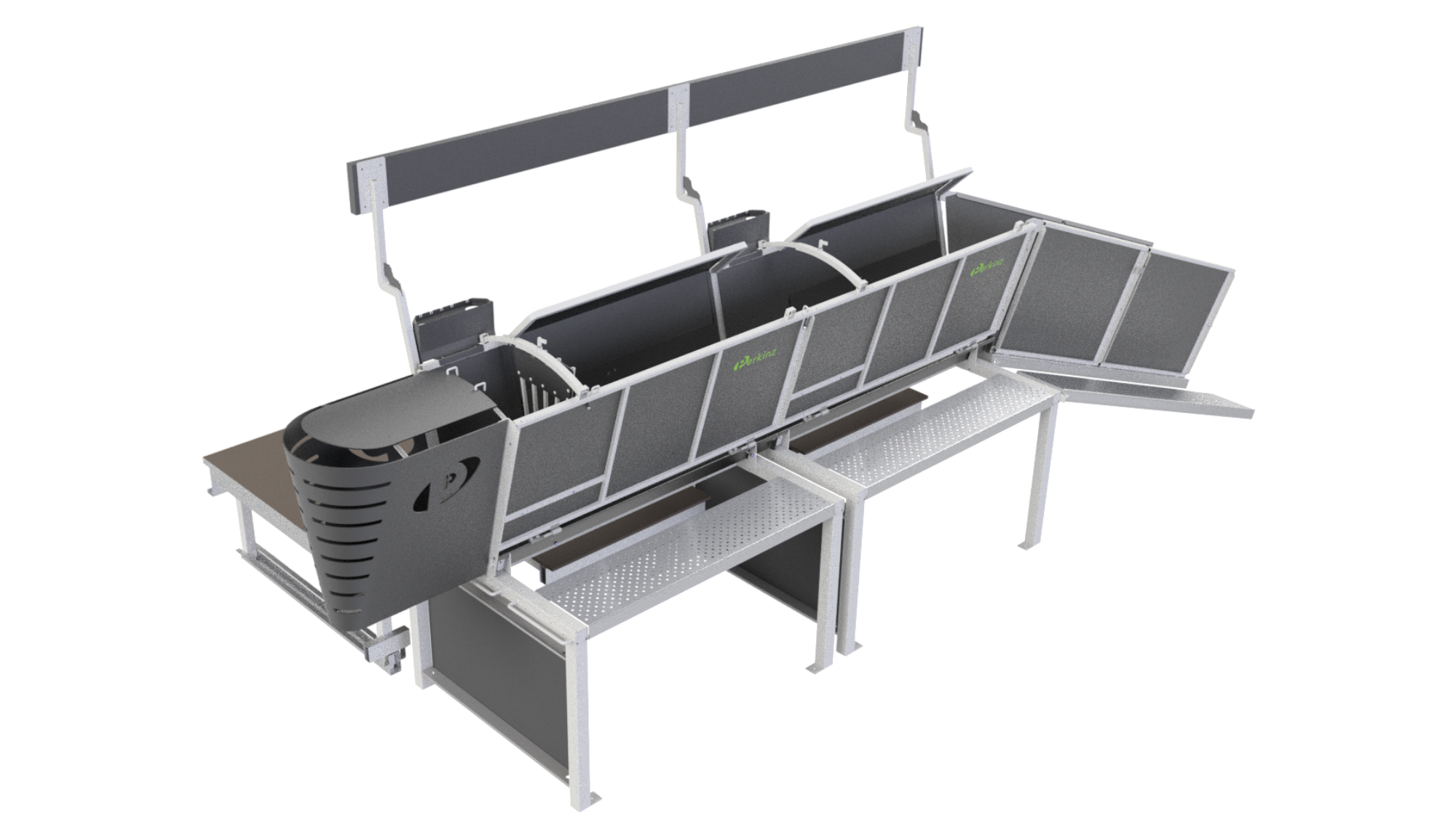 A 5-stand setup holds 35–40 sheep, meaning 7–8 sheep per shearer are ready to go at all times. That means fewer stops to refill the race, and more shearing per hour.