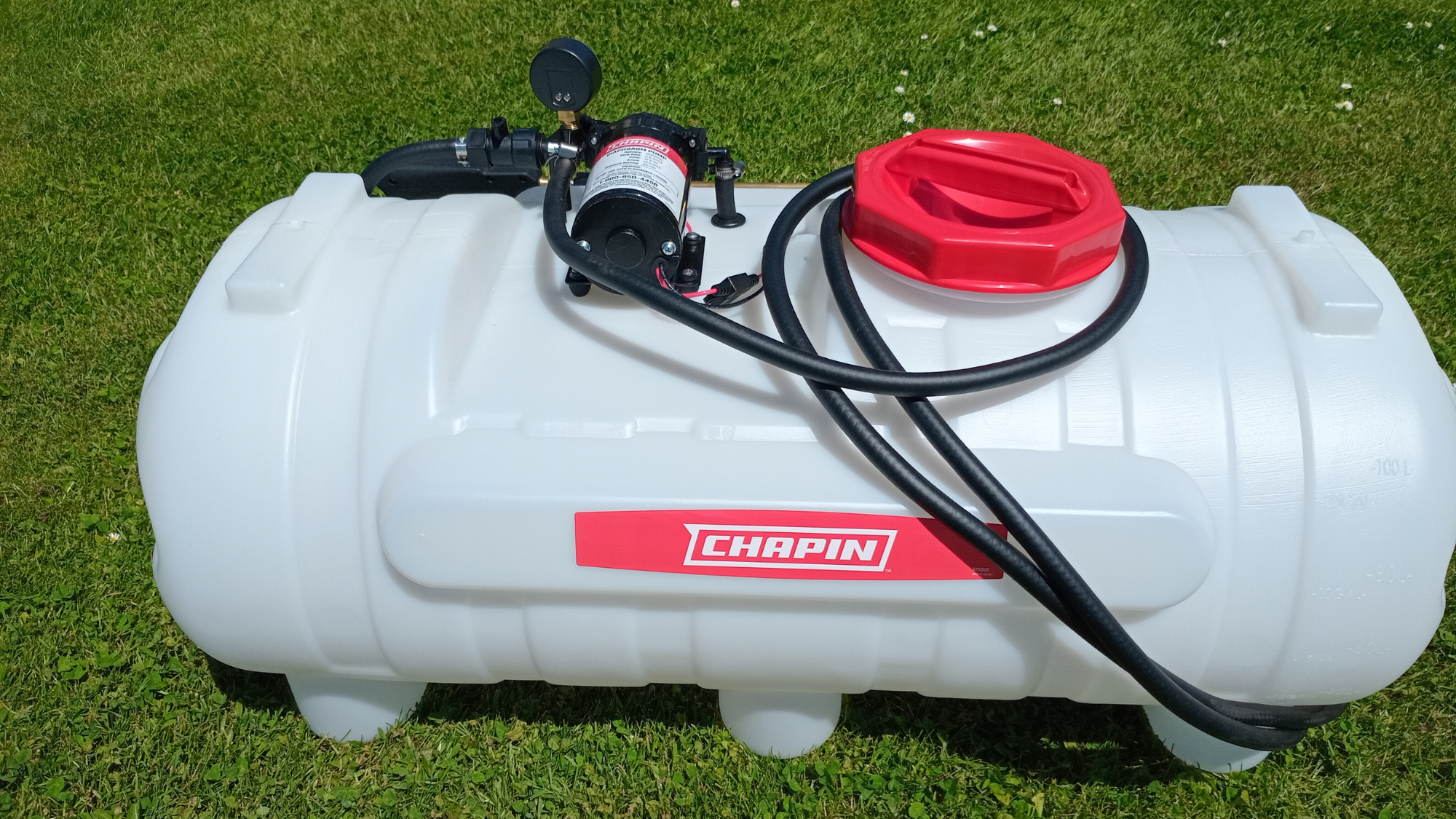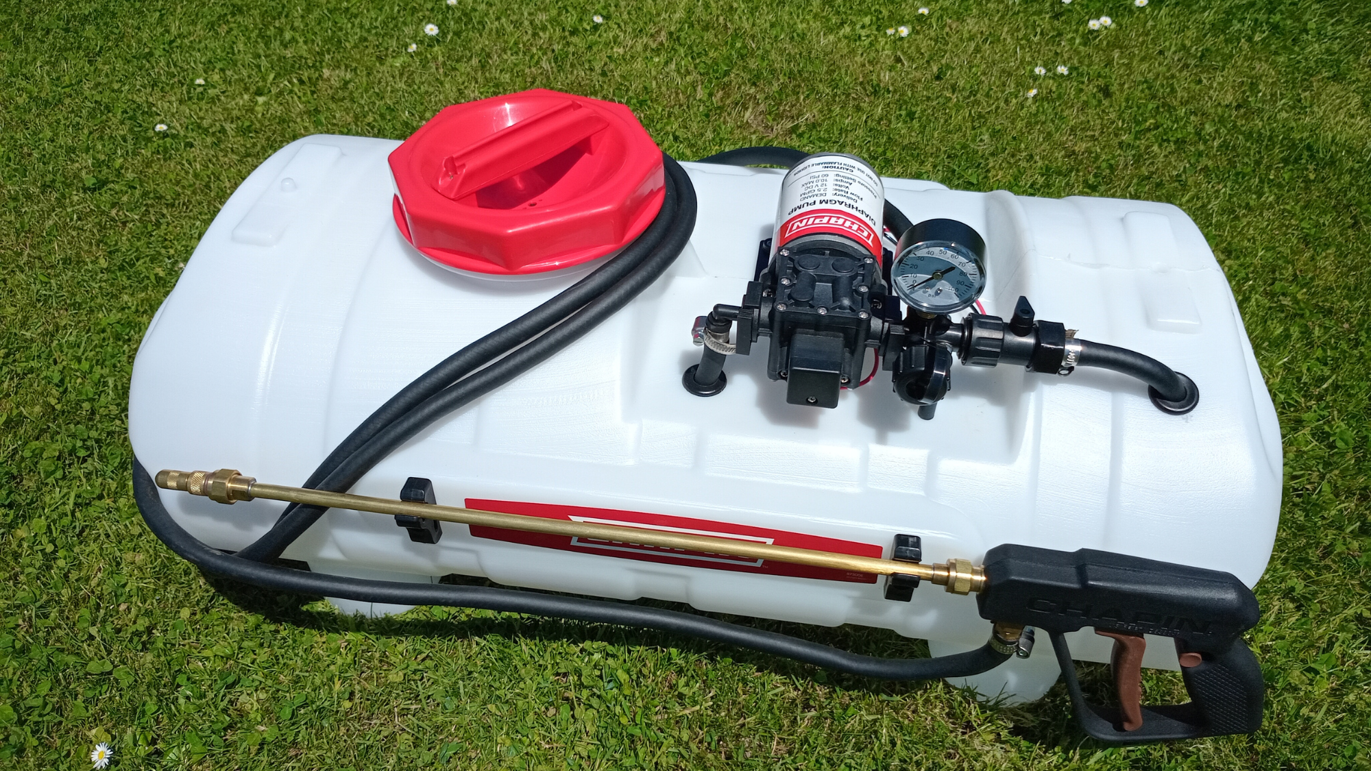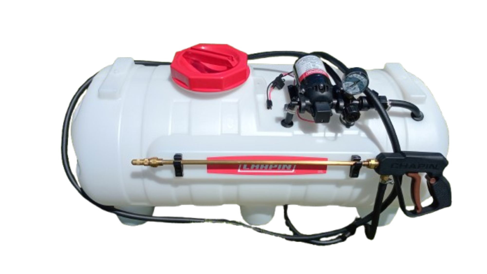 Powerful Chapin 12V pump - 8.3 LPM flow rate, connects directly to your ATV or tractor battery via alligator clips