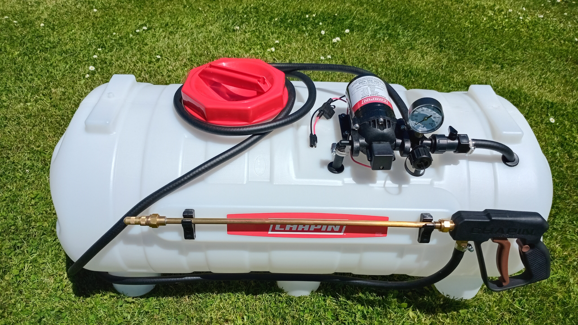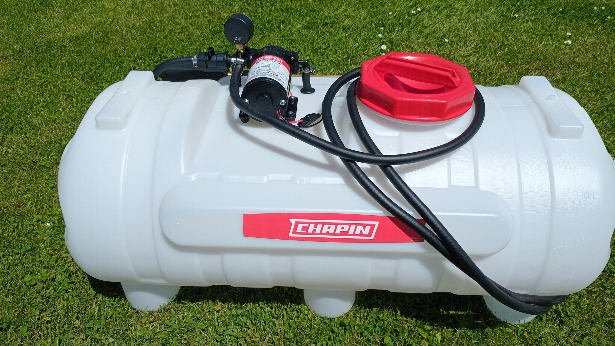 Powerful Chapin 12V pump - 8.3 LPM flow rate, connects directly to your ATV or tractor battery via alligator clips